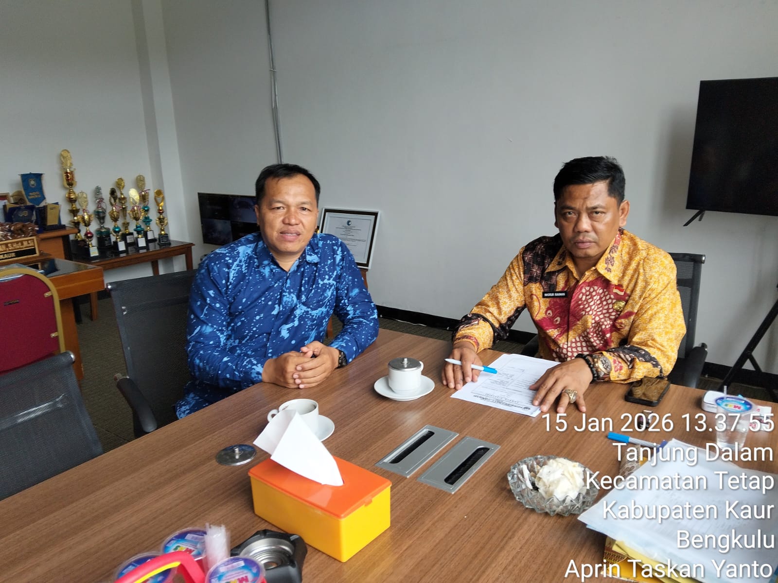 Ketua Panitia Ad-hoc KDMP Kaur Aprin Taskan Yanto ” Kita hari ini melakukan koordinasi dengan Pemerintah Daerah Kabupaten Kaur Mohon petunjuk dan pamitan untuk membentuk Forum KDMP Indonesia Kabupaten Kaur, mengingat pentingnya organisasi KDMP saat ini sebagai wadah berkumpul dalam kemajuan KDMP SE-KABUPATEN KAUR, harapan nya juga dengan adanya organisasi forum KDMP ini bisa menjadi payung bagi seluruh KDMP SE-KABUPATEN KAUR kedepan nya, sehingga selalu koordinasi selalu dengan Pemerintah Daerah Kabupaten Kaur dalam memajukan KDMP sesuai harapan kita semua, mengingat program yang sudah di realisasikan oleh pemerintah pusat terhadap KDMP ini sudah cukup besar, kita menyambut ini harus fokus dan serius, sayang sekali kalau KDMP ini tidak di jalankan secara maksimal dan profesional, Jelas Aprin dengan awak Media