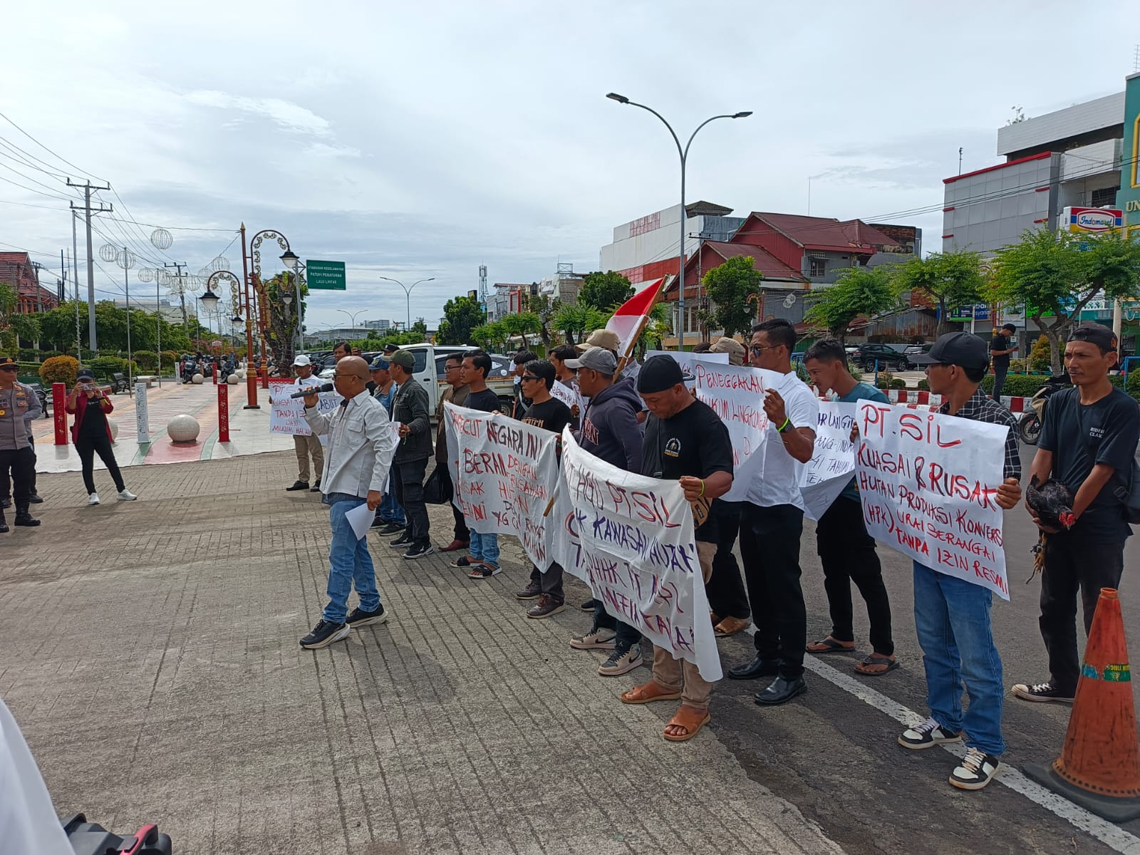 Bahkan tidak cuma pengerusakan dan penguasaan HPK juru orasi Dari YLH-Sebar Ishak Burmansyah mengatakan PT.SIL juga telah menguasai daerah sempadan sungai Menduo yang ada di kecamatan Pinang Raya dengan cara membabat habis sempadan sungai dan menanam sempadan sungai Menduo.